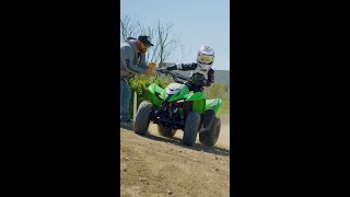 Four-wheel fun starts with KFX®. Get the kids outdoors and ready to ride on the KFX®90 ATV line with proportionate power and size for riders ages 10 and older. KFX90 ATVs let kids take on more challenging tracks and bigger adventures with an 89.9cc engine and sporty suspension.